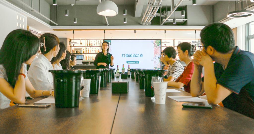 5月15日下午,旅游与管理学院在森·呼吸酒店多功能实训室举办红葡萄酒系列品鉴沙龙活动。旅游与管理学院党总支书记曹艳、学校各分工会教师代表参加本次活动。