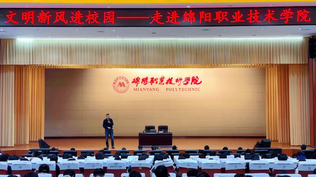 11月15日下午,学校党委宣传统战部与材料与建造学院联合开展文明新风进校园主题活动。本次活动特邀“中国好人、四川好人”张玉波老师担任主讲嘉宾。绵阳市委宣传部文明创建指导科科长崔亚鑫,学校党委常委、宣传统战部部长文泽浩及全校600余名师生参加活动。