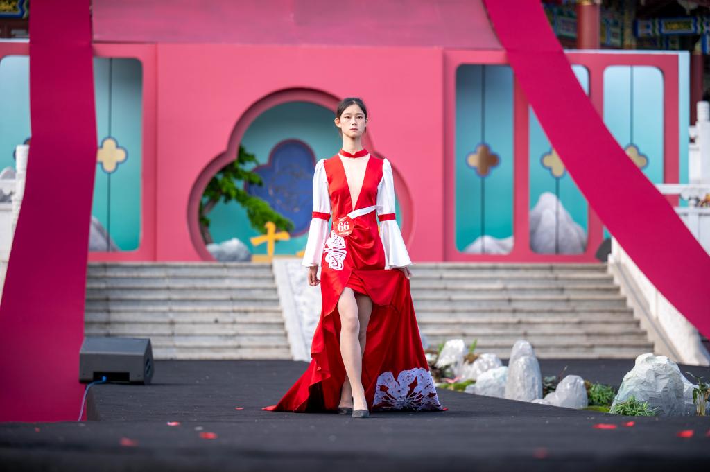 活动中,我校艺术设计学院的学生将神话传说、民族风情等元素融入汉服设计,用创新诠释经典,彰显了独特的设计理念,传递了保护自然与生态的深刻主题。