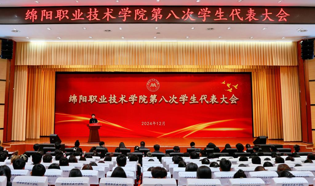 党委学工部副部长张玺在会上宣读了《绵阳市学生联合会关于同意召开绵阳职业技术学院第八次学生代表大会的批复》。大会审议通过了《绵阳职业技术学院第八届学生联合会章程(修正案)》以及《绵阳职业技术学院第七届学生委员会工作报告》。投票选举了陈俊文等9名同学为学校第八届学生委员会委员。