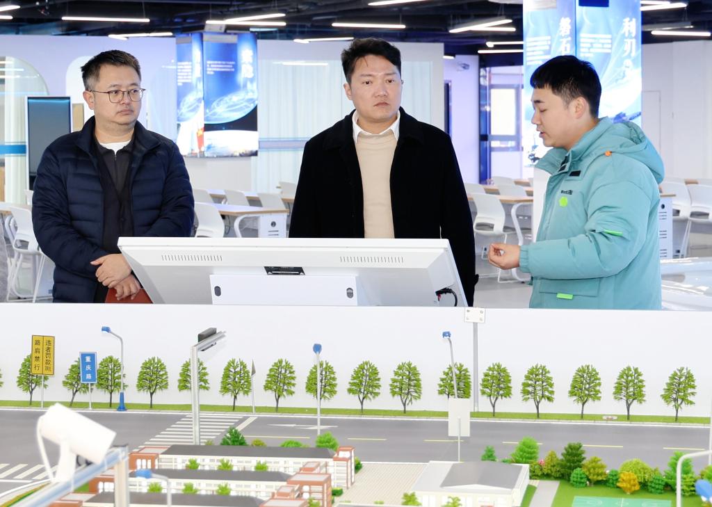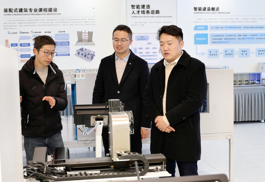 会前,在文泽浩等陪同下,刘侠一行参观了学校材料与建造学院实训基地和电子与信息学院人工智能研学基地。