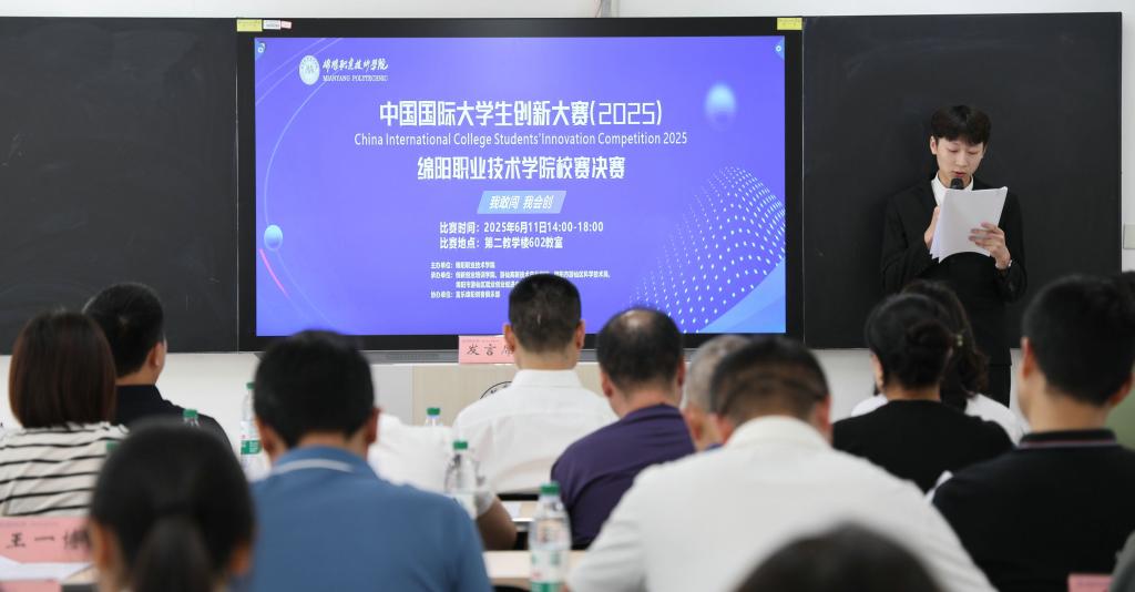 6月11日下午,学校举办中国国际大学生创新大赛(2025)校赛决赛。游仙区高新技术产业园科创部二级调研员刘志林,游仙区科学技术局副局长戴思宇,游仙区就业创业促进中心副主任崔泽江,学校党委常委、副院长苟安经观摩大赛。全校24支队伍在决赛中进行路演答辩。