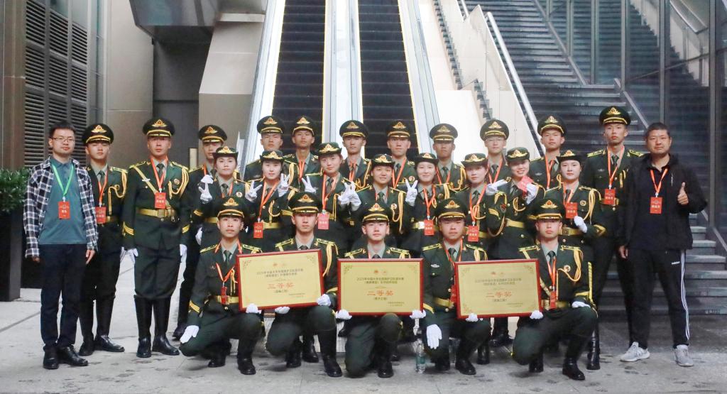 本次比赛分为甲组(本科组)、乙组(高职高专组)两个赛道,每个赛道设置男子组、女子组、混编组3个组别,开展升旗展示、队列动作两个项目竞赛。我校国旗护卫队的队员们在比赛过程中步伐矫健、口号响亮,转体、敬礼精准到位,尽显拼搏精神与过硬军事素养。在混编队列及升旗项目中,我校男女队员默契配合、动作流畅,团队凝聚力与协作精神一目了然,完美诠释了“护卫国旗,重于生命”的誓言,赢得了现场评委的一致好评。