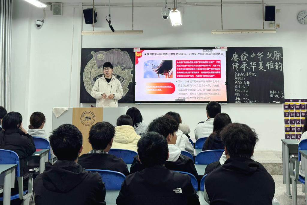 活动中,同学们通过观看“春天里·议国是——共担文化使命”微视频,深入理解“泱泱中华,历史何其悠久,文明何其博大,这是我们的自信之基、力量之源”的内涵,并围绕激活文化基因、传承文化瑰宝、激发文化活力三个方面展开学习讨论。在文化体验环节,别开生面的非遗文化竞猜将现场气氛推向高潮。同学们通过竞猜与交流,深化了对文化遗产的认知,增强了保护文化瑰宝的自觉。大家还观看了“理响中国·读懂中华文明:中华文明在创新中迈向未来”视频,同学们从哲学基础、科技文明、精神文明等多方面,了解中华文明的突出创新性。