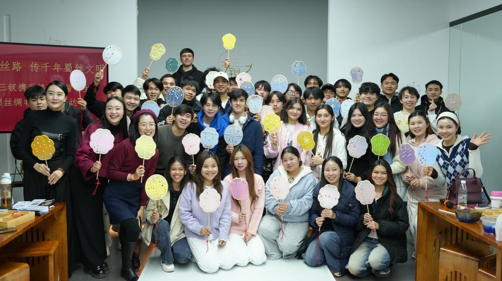 近日,我校文化旅游学院联合四川十三钗国潮文化传播有限公司,举办了“丝路之韵,匠心传承”国际学生非遗研学活动。来自老挝、柬埔寨等“一带一路”共建国家的近40名国际学生,通过沉浸式体验丝绸文化相关技艺,感受中华优秀传统文化独特魅力。