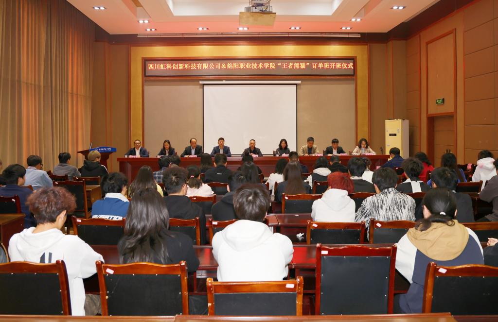 4月1日下午,我校与四川虹科创新科技有限公司“王者熊猫”订单班开班仪式在行政楼第一会议室举行。绵阳科技城发展投资(集团)有限公司人力资源部部长陈丽微,四川虹科总经理何华超,我校党委常委、副院长张明出席开班仪式。