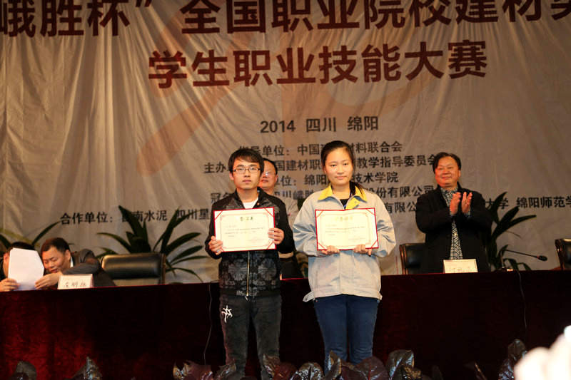 高职水泥物检项目一等奖获得者:常州工程职业技术学院叶鑫,绵阳职业技术学院吴政锋,昆明冶金高等专科学校施绍云,山西职业技术学院王翔