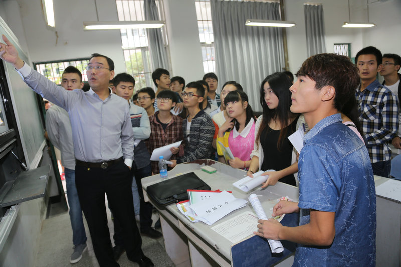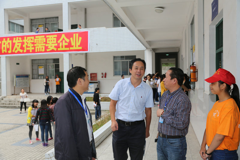 在学院副院长左明扬、就业处处长陈林陪同下视察招聘会现场