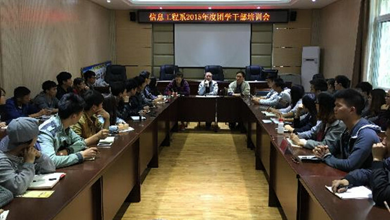 10月28日,信息工程系在系会议室举行2015年度团学干部培训会。系新一届团学干部参会,并首次将系部所属协会的负责人也纳入培训范围。学生干事王世军主持培训。