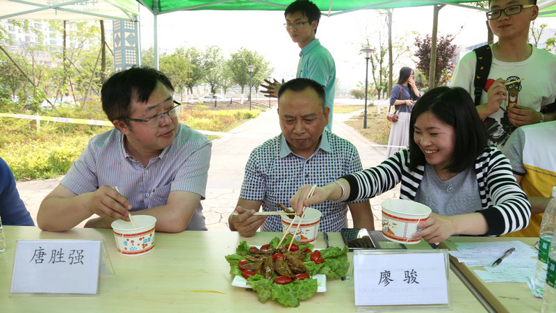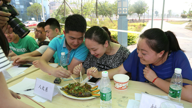 大赛以“厨神入化”为主题,分为“刀功”、“规定菜式”和“自选菜式”三个环节。选手们从选购材料到现场制作,每一个环节都非常认真,精心打造参赛“作品”。观众积极参与互动,始终抱着观赏和学习的态度,主动询问自己感兴趣菜肴的做法。经过选手一个半小时的紧张烹饪和精心制作,十几道色香味俱全的精美菜肴呈现在大家面前。计划财务处处长廖骏、学工部部长朱成友、材料工程系党总支书记唐胜强等和材料工程系全体辅导员、各系学生代表担任大赛评委,兴致勃勃地品尝每一道菜肴,并给出了中肯评价。