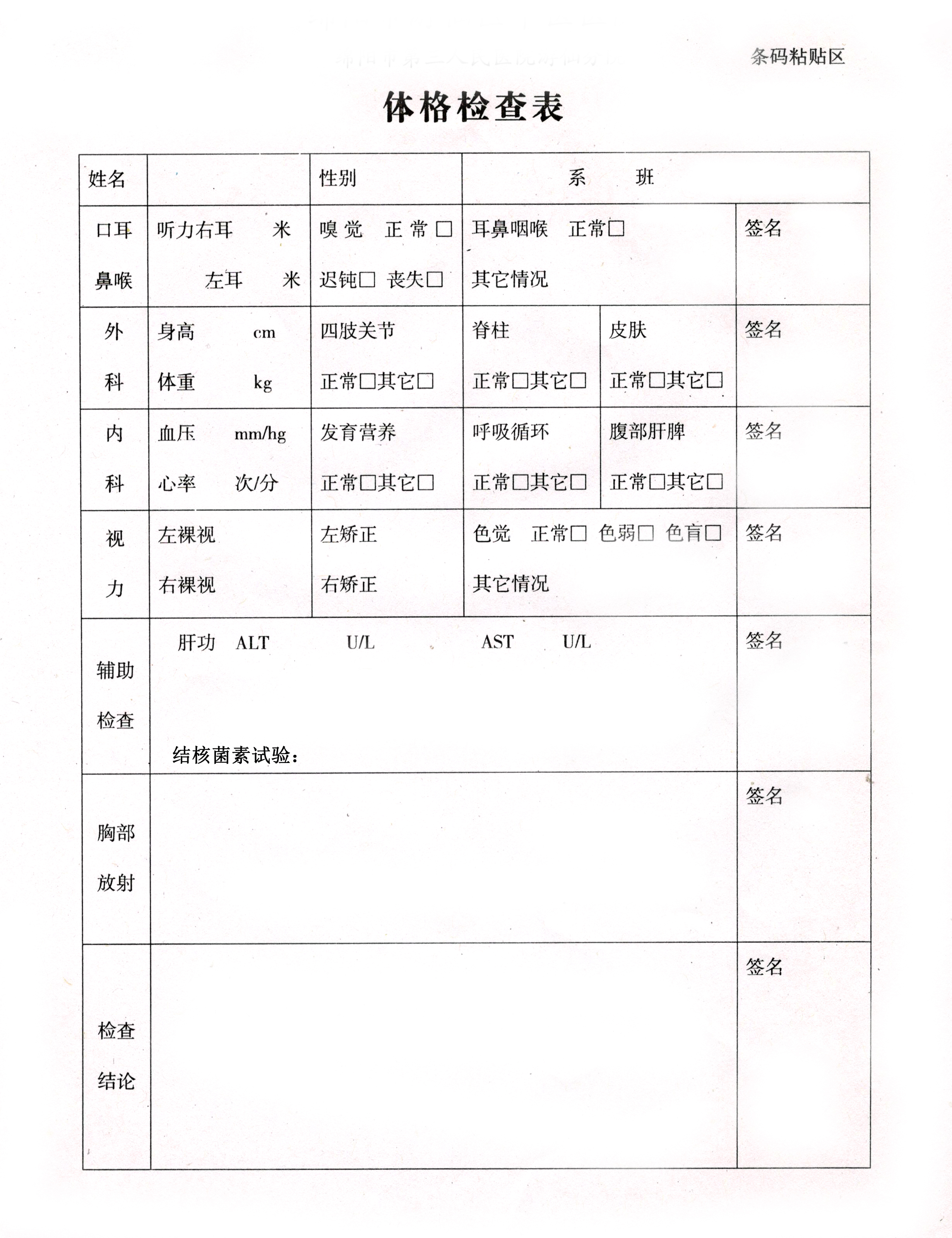 4.体检项目见附件(二),体检报告入校后提交校医室审核。