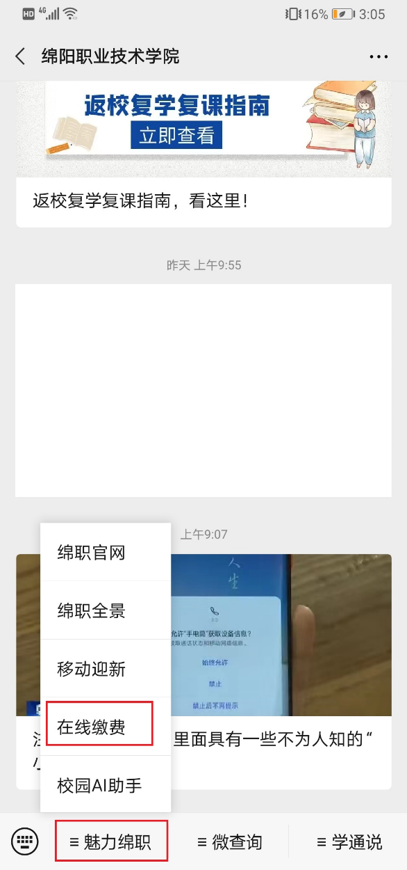 4、在“绵阳职业技术学院”公众号首页下方,点击“魅力绵职”,进入图5界面